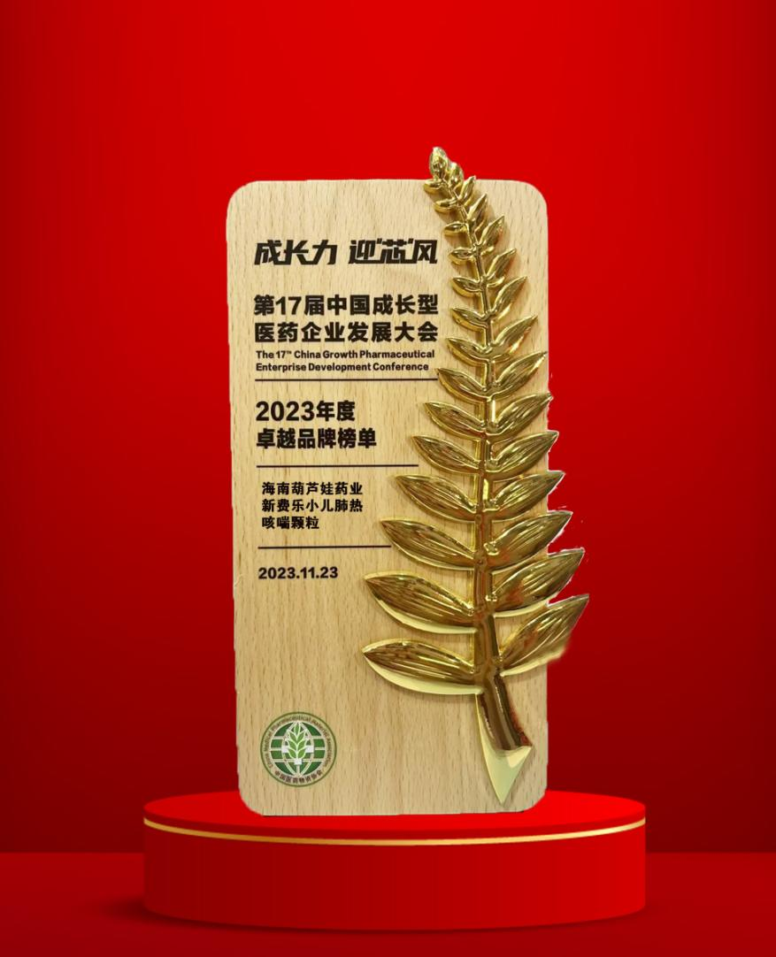 大会期间,一年一度的“金叶奖•2023年度医药行业风云人物奖”榜单重磅揭晓,球速体育药业集团党委书记、董事长刘景萍荣耀上榜。金叶奖是为了表彰广大医药企业家或企业为行业茁壮发展做出的卓越贡献而设立的奖项,“金”象征着品质、品牌、影响力,“叶”象征着生命、健康、成长力。金与叶结合,有“敬业、兢业、竞业”之意。此外,集团黄金单品新费乐®小儿肺热咳喘颗粒凭借卓越的产品质量和品牌影响力赢得了行业、市场和消费者的肯定,获得了“2023年度卓越品牌奖”。