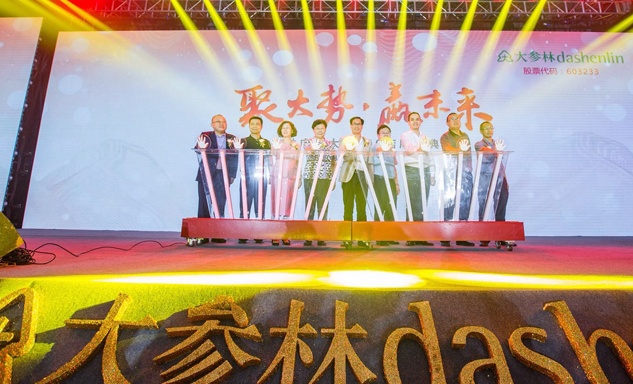 球速体育药业集团董事长刘景萍女士与大参林医药集团董事长柯云峰先生、中国医药商业协会执行会长付明仲女士等嘉宾共同开启了“聚大势•赢未来"大参林工商合作峰会的大幕。